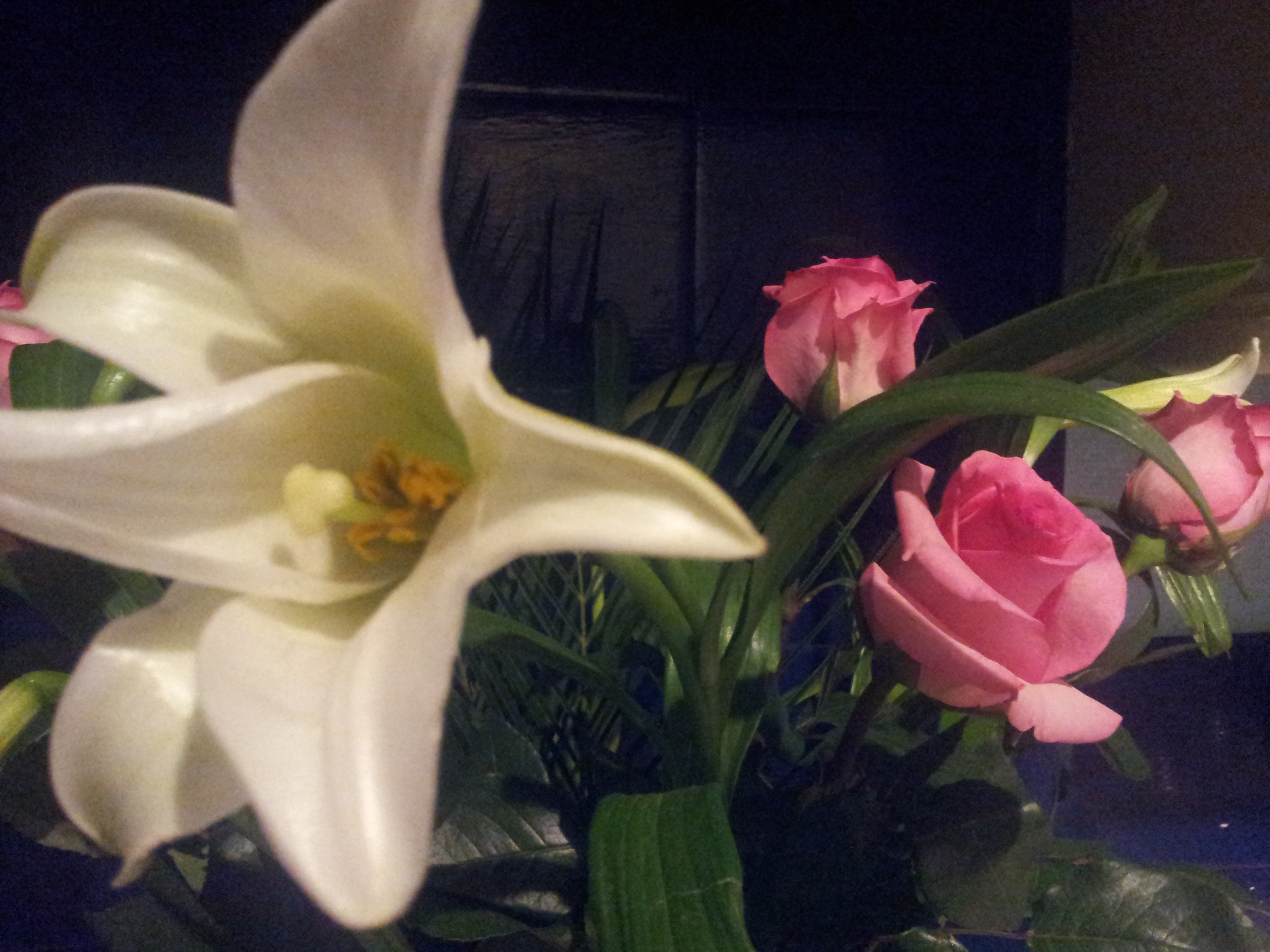 In the evening, as I was putting a book on the shelf, I saw the flowers!